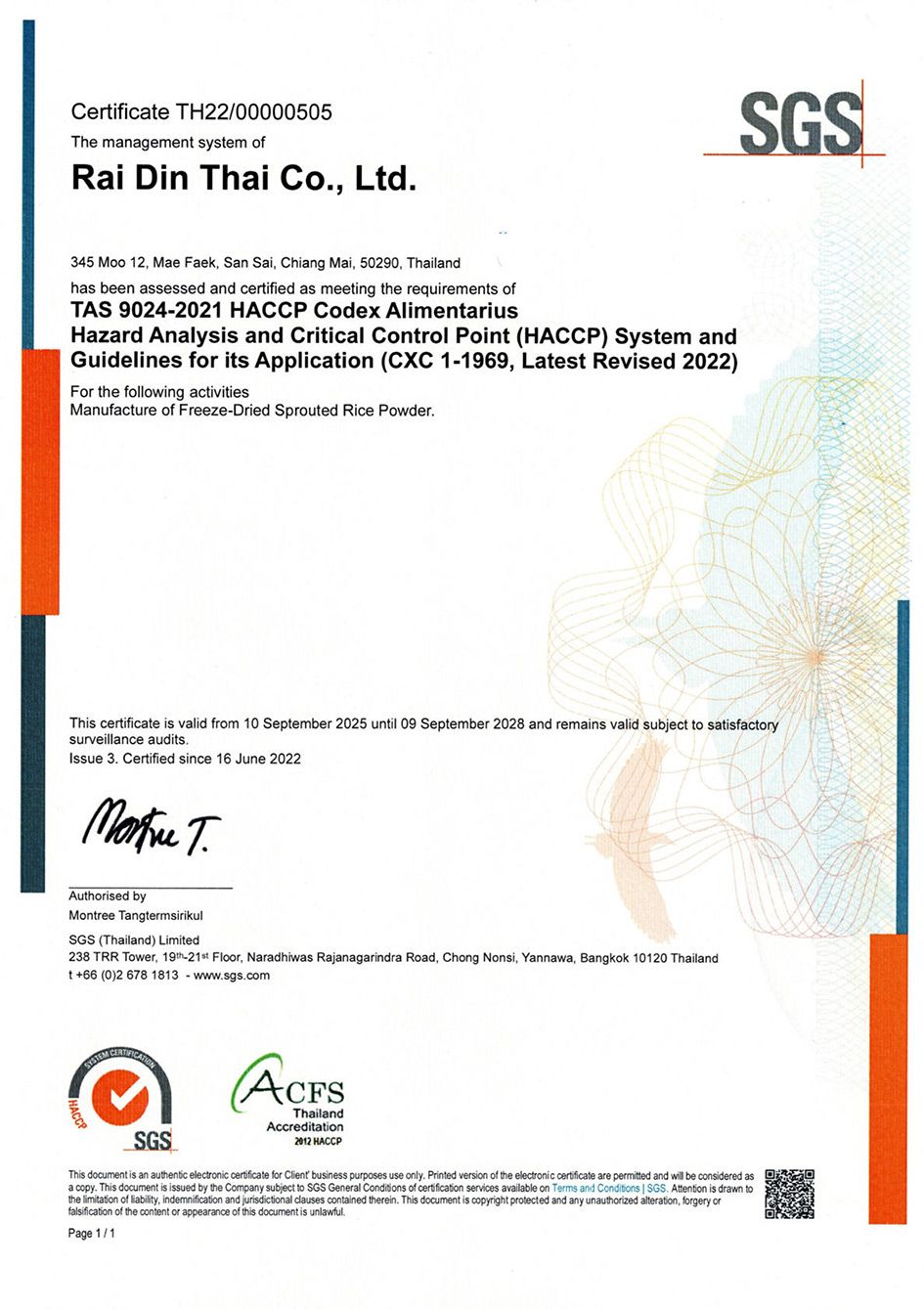 Rai Din Thai’s sprouting facility is fully HACCP (Hazard Assessment Critical Control Points) compliant, with our certificate issued by SGS the world’s leading testing, inspection and certification company in food quality assurance